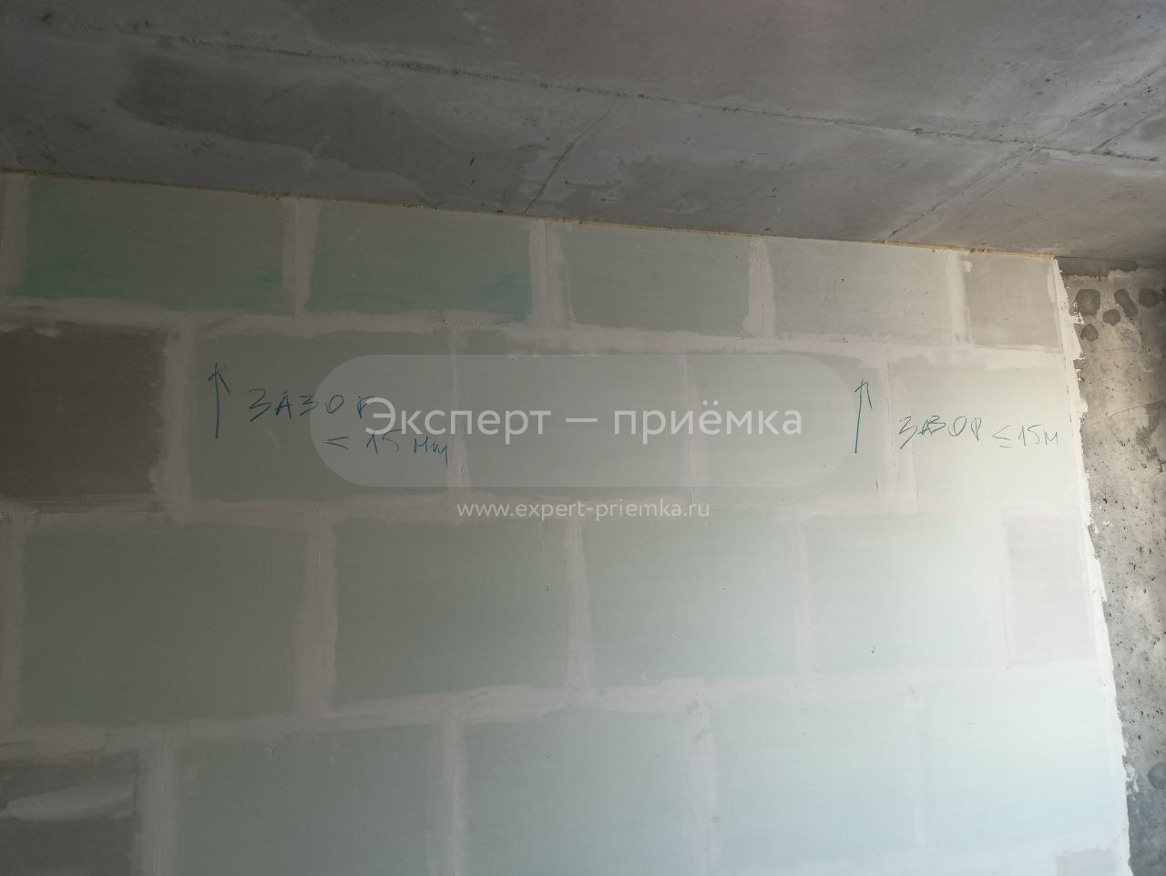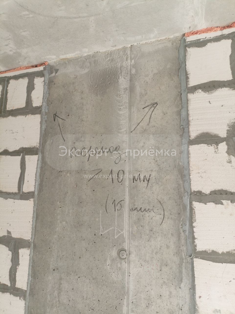 Слева от входа перепад между кирпичной кладкой и колонной 15 мм отмечено маркером
