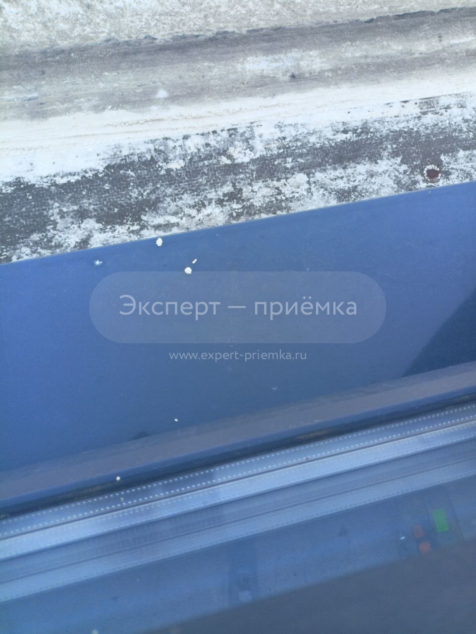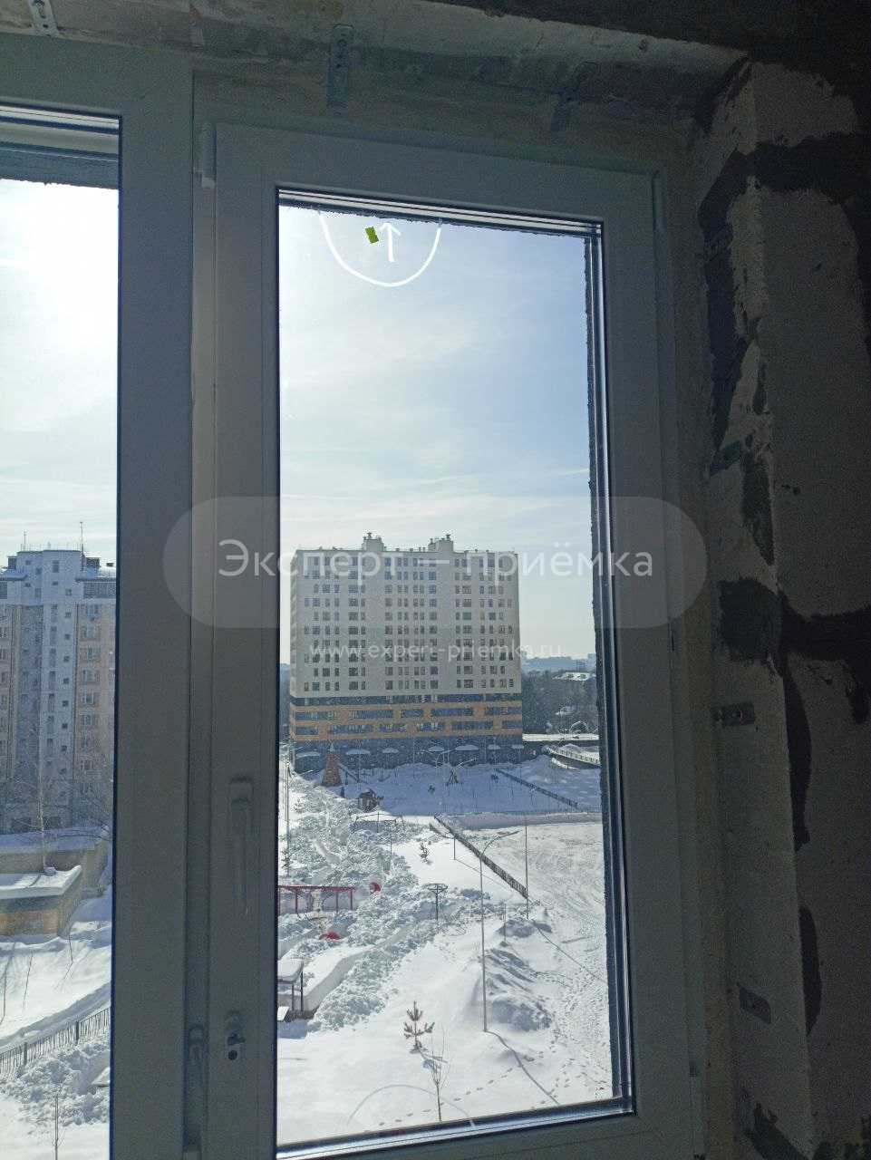 Царапина на крайней правой створке окна вверху и внизу отмечено маркером